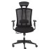 Respaldo tapizado en malla color negro y marco en polipropileno color negro y soporte lumbar ajustable. cabecera tapizada en vinil color negro, asiento tapizado en tela color negro y hule espuma inyectado de 53 kgs./m鲁, brazos en 3D con ajuste de altura.